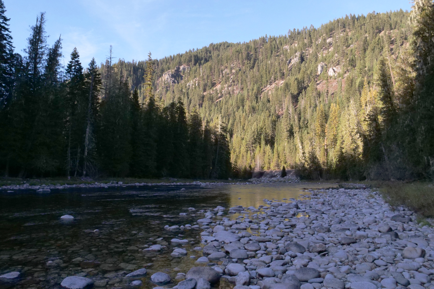Auf der Lolo Greek Road (Hwy 12) fuhr ich in Richtung Lolo Pass. Die Strasse schlängelt sich am Lolo Greek entlang. Vor dem Pass legte ich mich in das warme Wasser der Lolo Hot Springs. Das Bad macht einen etwas heruntergekommenen Eindruck. Es war sauber, aber der Beton und das Holz könnten einen neuen Anstrich vertragen. Überall auf der Strecke gibt es Gedenktafeln, die an die Clark & Lewis Expedition erinnern. Sie benutzten den Lolo Pass auf ihrem Weg zum und vom Pazifik. Nach dem Lolo Pass fand ich einen Platz am Lochsa River. Auch dort gefiel es mir und ich blieb 2 Nächte. Nach den langen geraden Strassen war das Fahren auf dem Hwy 12 eine willkommene Abwechslung. Zuerst entlang des Lolo Greek auf den Pass (1600m). Erst am Croked Fork, dann am Lochsa River entlang. Ringsum viel Wald mit wenigen Spuren von Waldbränden.